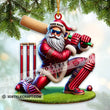 Custom Name Cricket Ball Santa Ornament, Cricket Ball Lover Christmas Gift