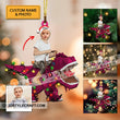 Kid Riding Dinosaur - Christmas Gift For Family Custom Photo And Name Personalized Acrylic Ornament