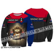 Unisex Shirt - Custom Name 3D Anzac Day Lest We Forget Zipper Hoodie / S T-Shirt