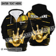 Unisex Shirt - Custom Name And Team Name Sport Shirt, Gold Bowling Ball And Pins