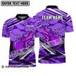Unisex Shirt - Custom Name And Team Name Shirt, Purple Fire Bowling Ball Player Shirt