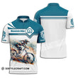 Unisex Shirt - Custom Name Mountain Bike Sport Blue And White Biker Zipper Polo / S T-Shirt