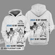Unisex Shirt - Custom Name Jesus Is My Savior Golf Therapy Hoodie / S T-Shirt