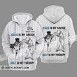 Unisex Shirt - Custom Name Jesus Is My Savior Golf Therapy Zipper Hoodie / S T-Shirt