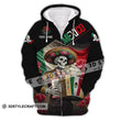 Unisex Shirt - Custom Name Mexico Skull Zipper Hoodie / S T-Shirt